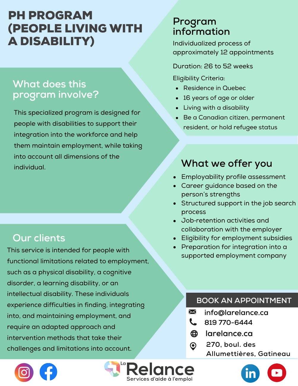 Come and explore a universe full of possibilities adapted to your reality. We have several qualified professionals at La Relance to support you.